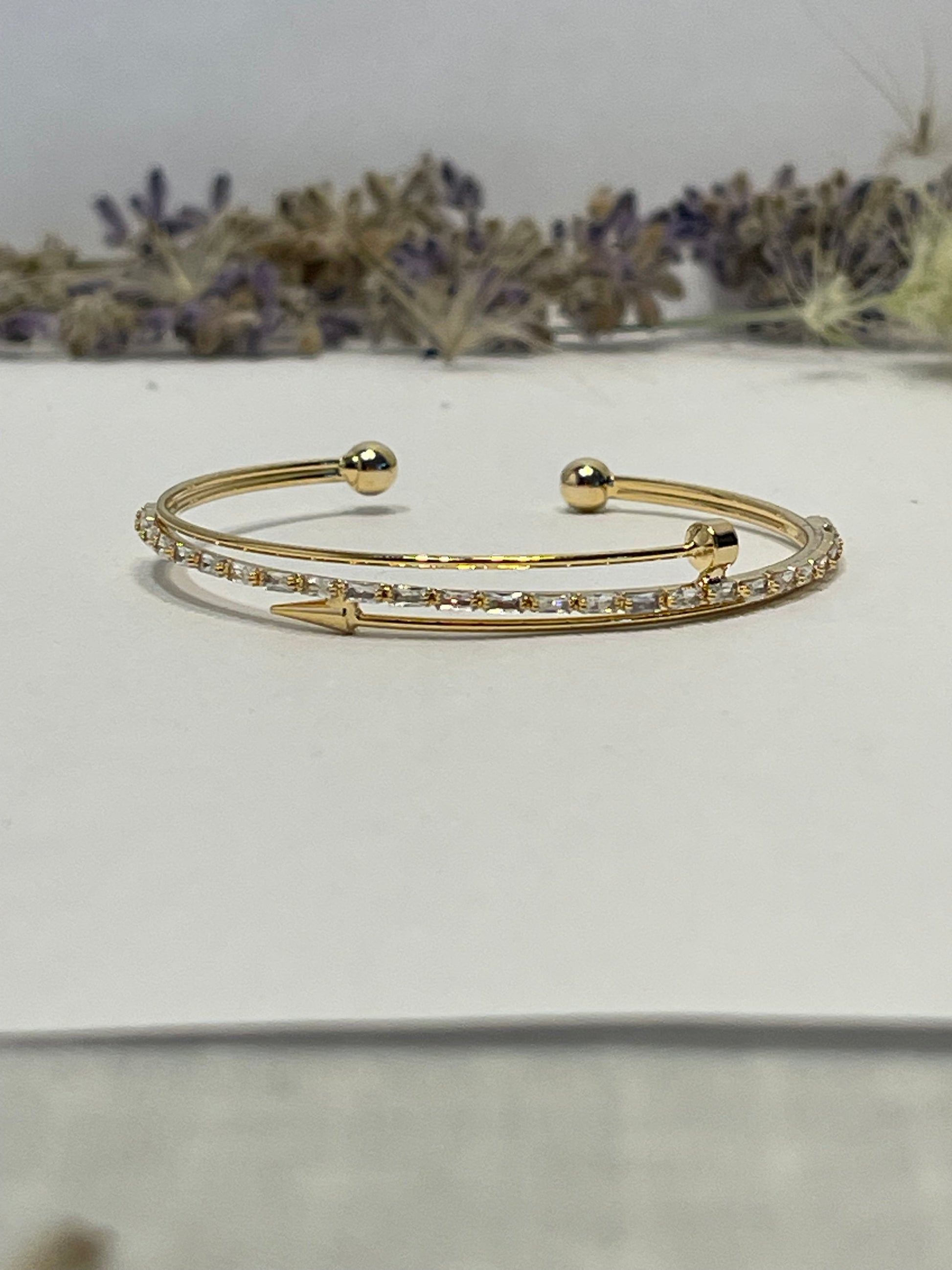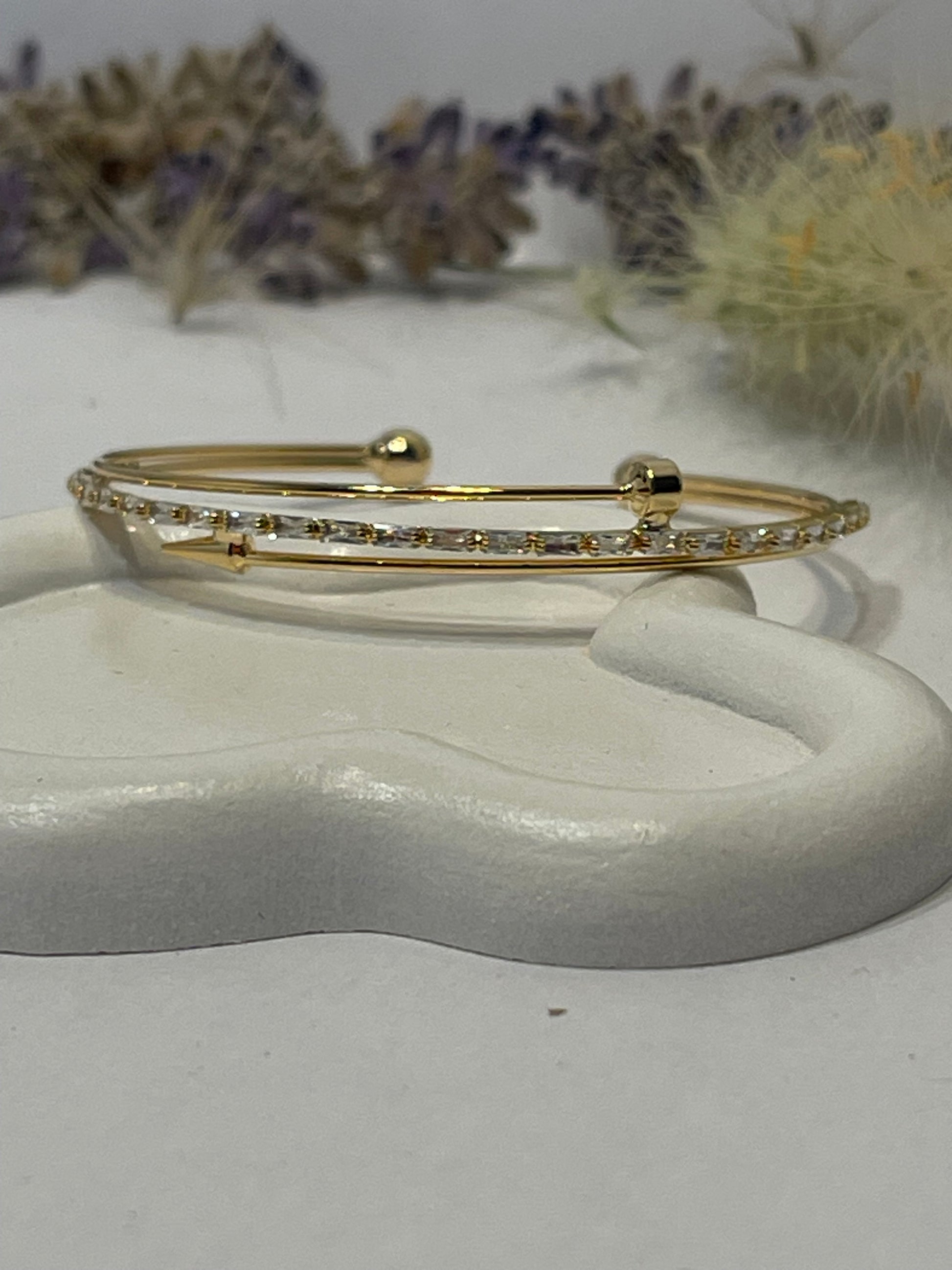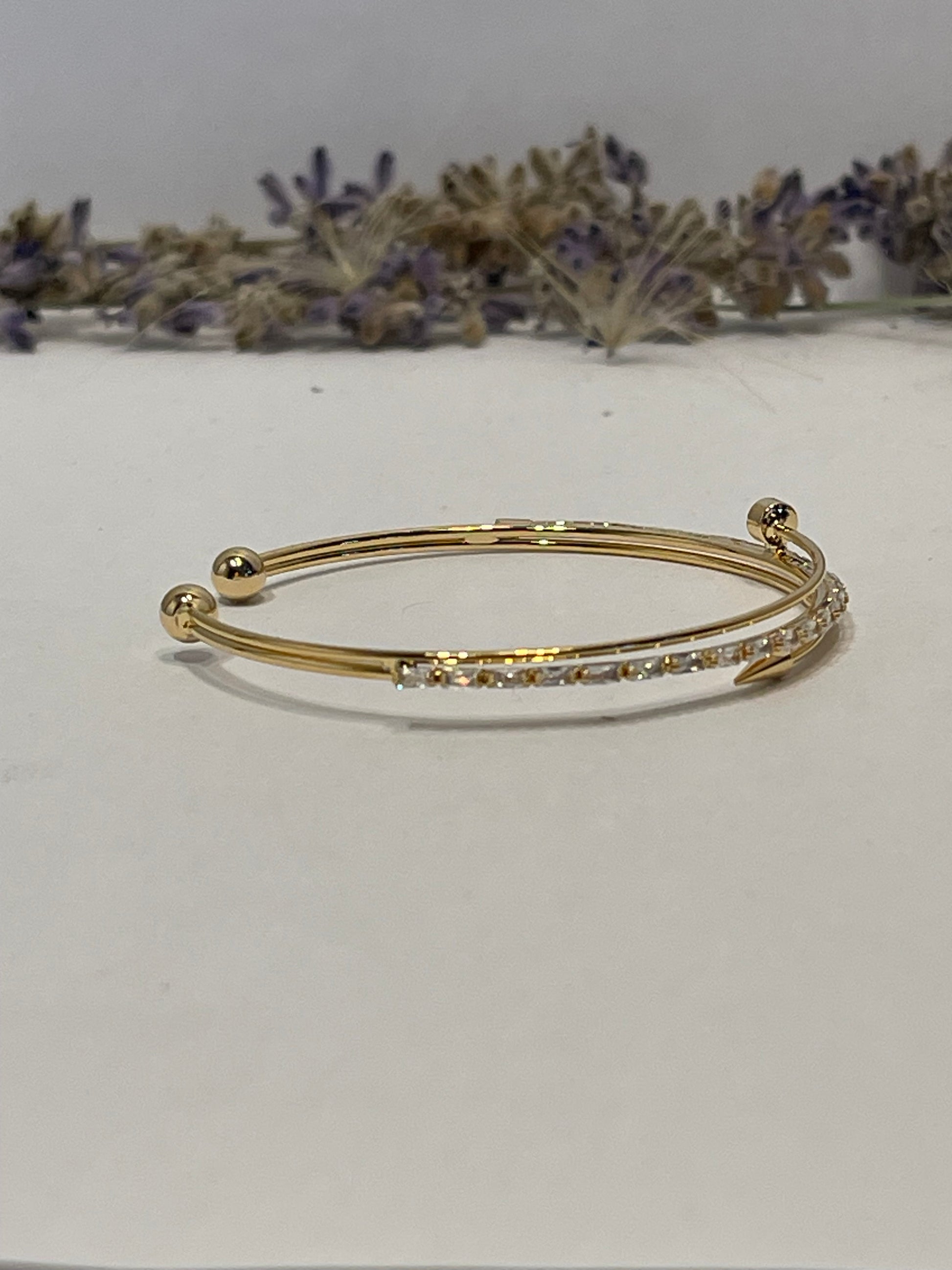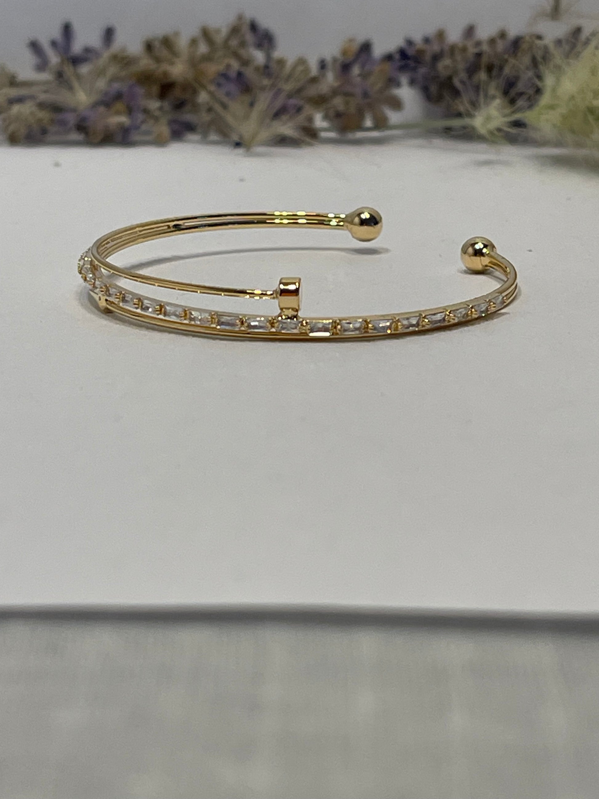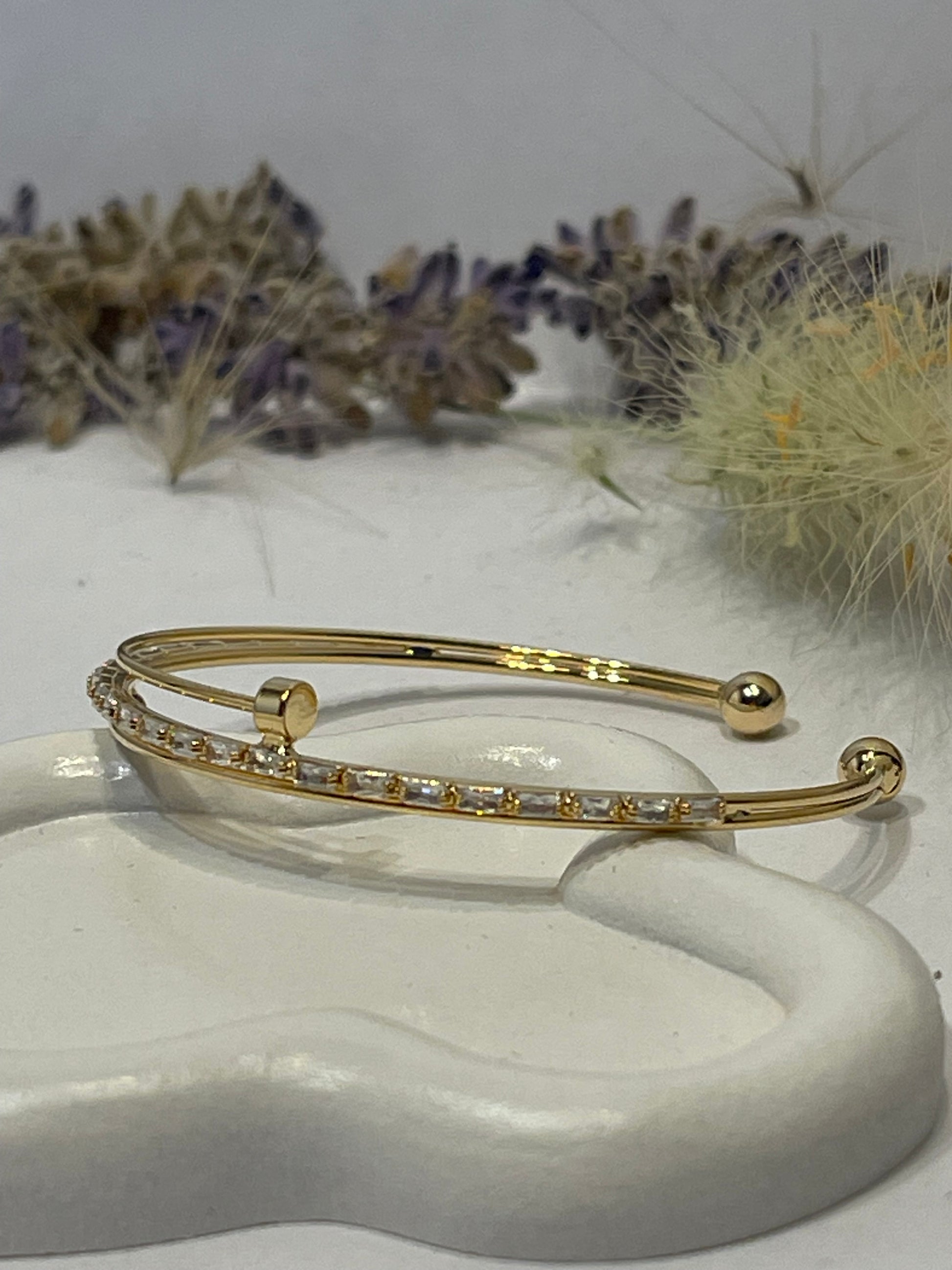 "Delicate gold bracelet adorned with sparkling silver rhinestones that won't change color, combining beauty and elegance. This bracelet adds a distinctive and simple touch to your look, perfect for brightening your days."