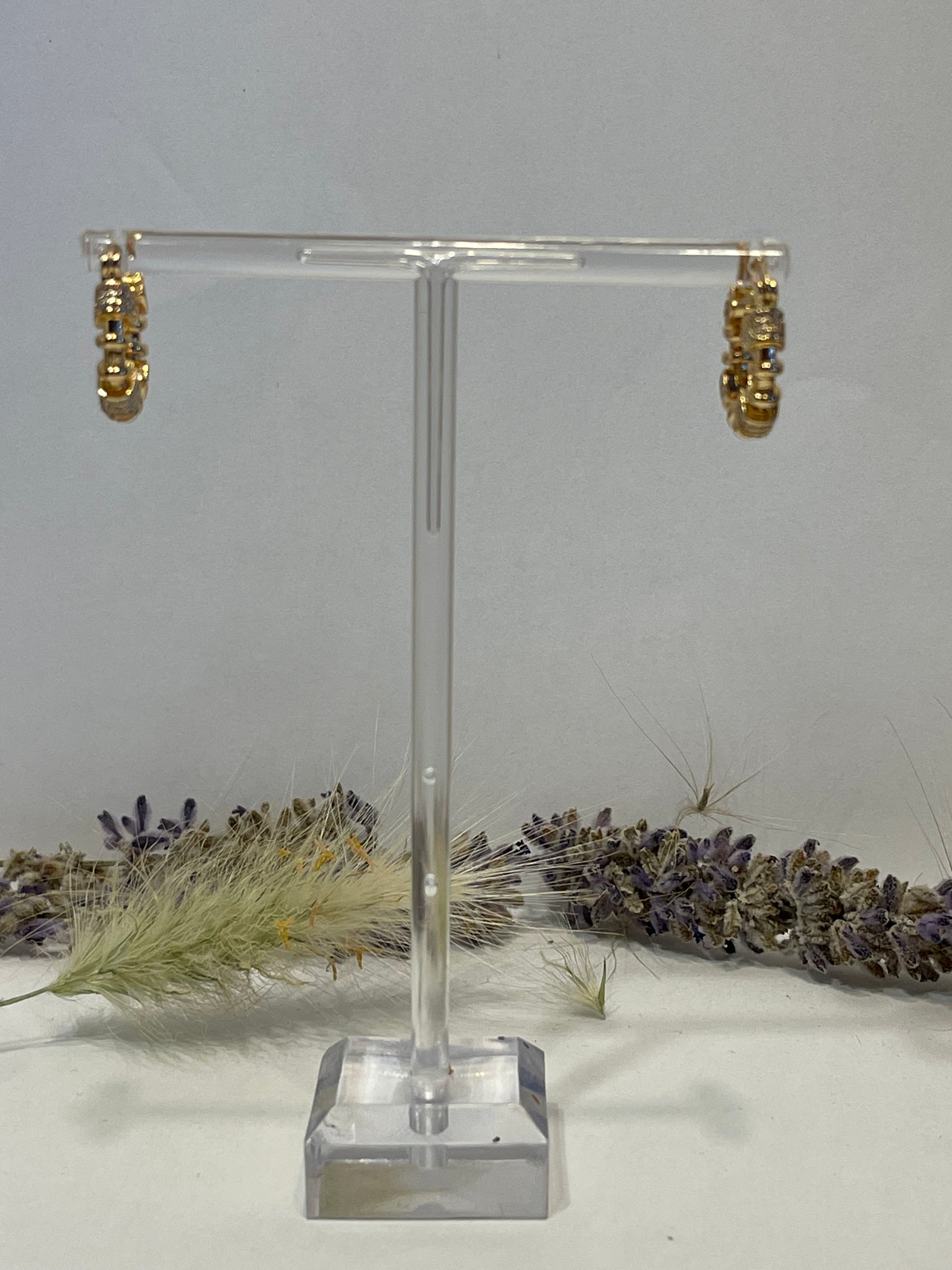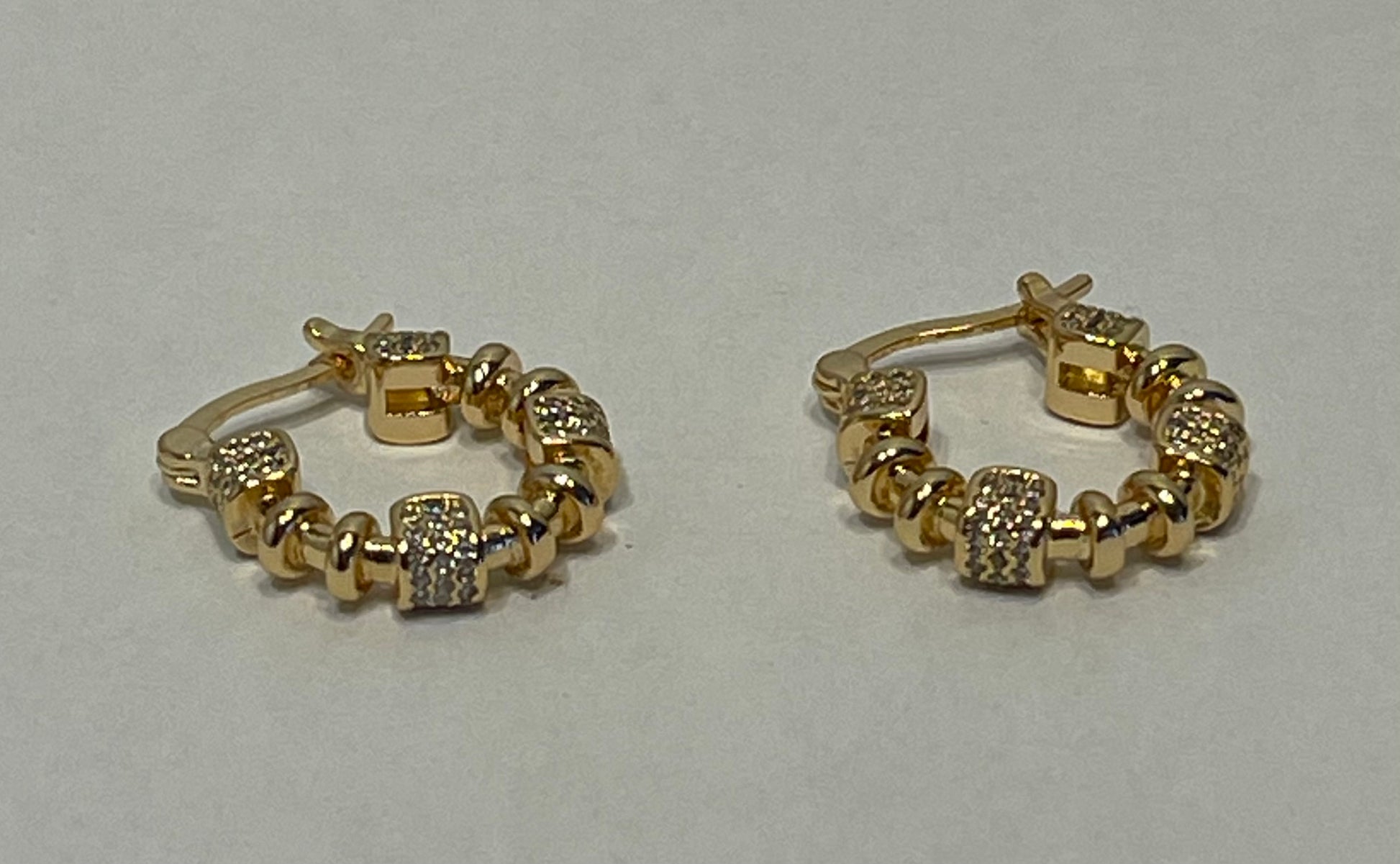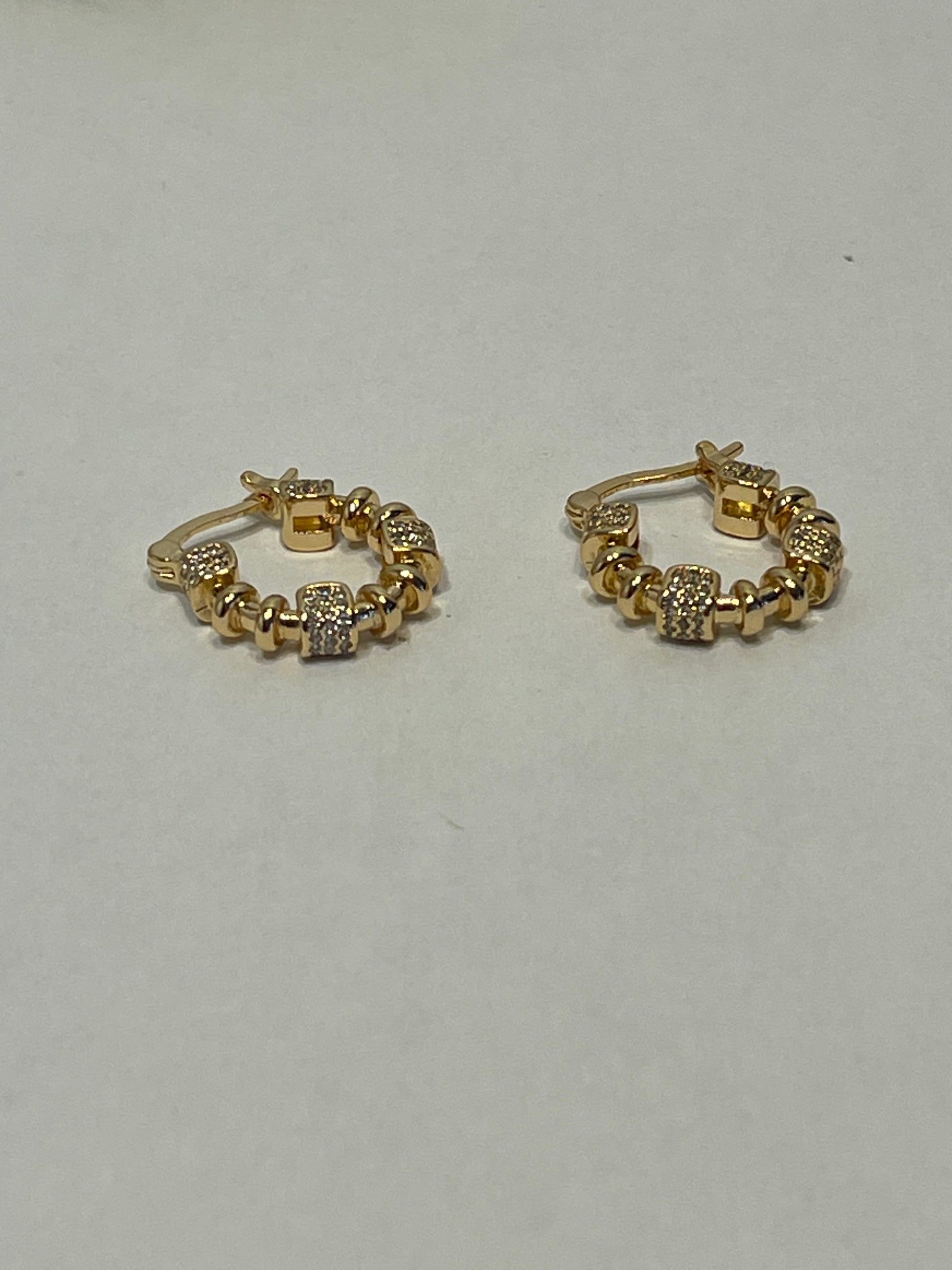 "Boucles d'oreilles dorées ornées de strass argentés, très élégantes et qui ne changent pas de couleur. Une pièce unique qui vous plaira,