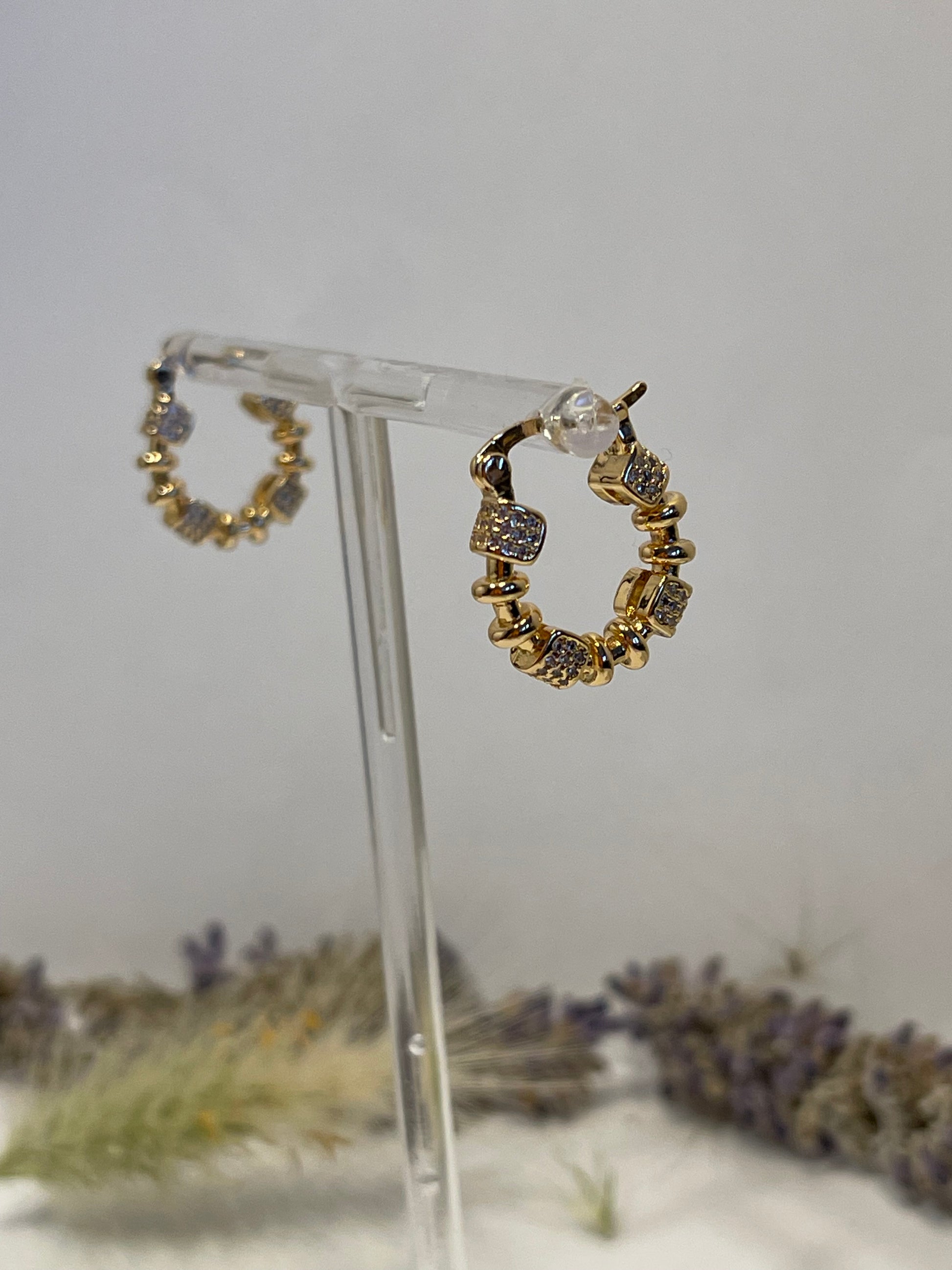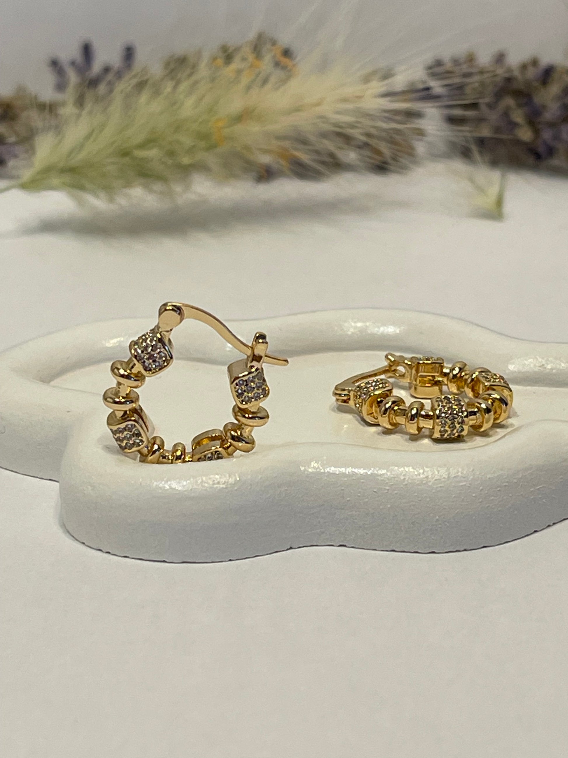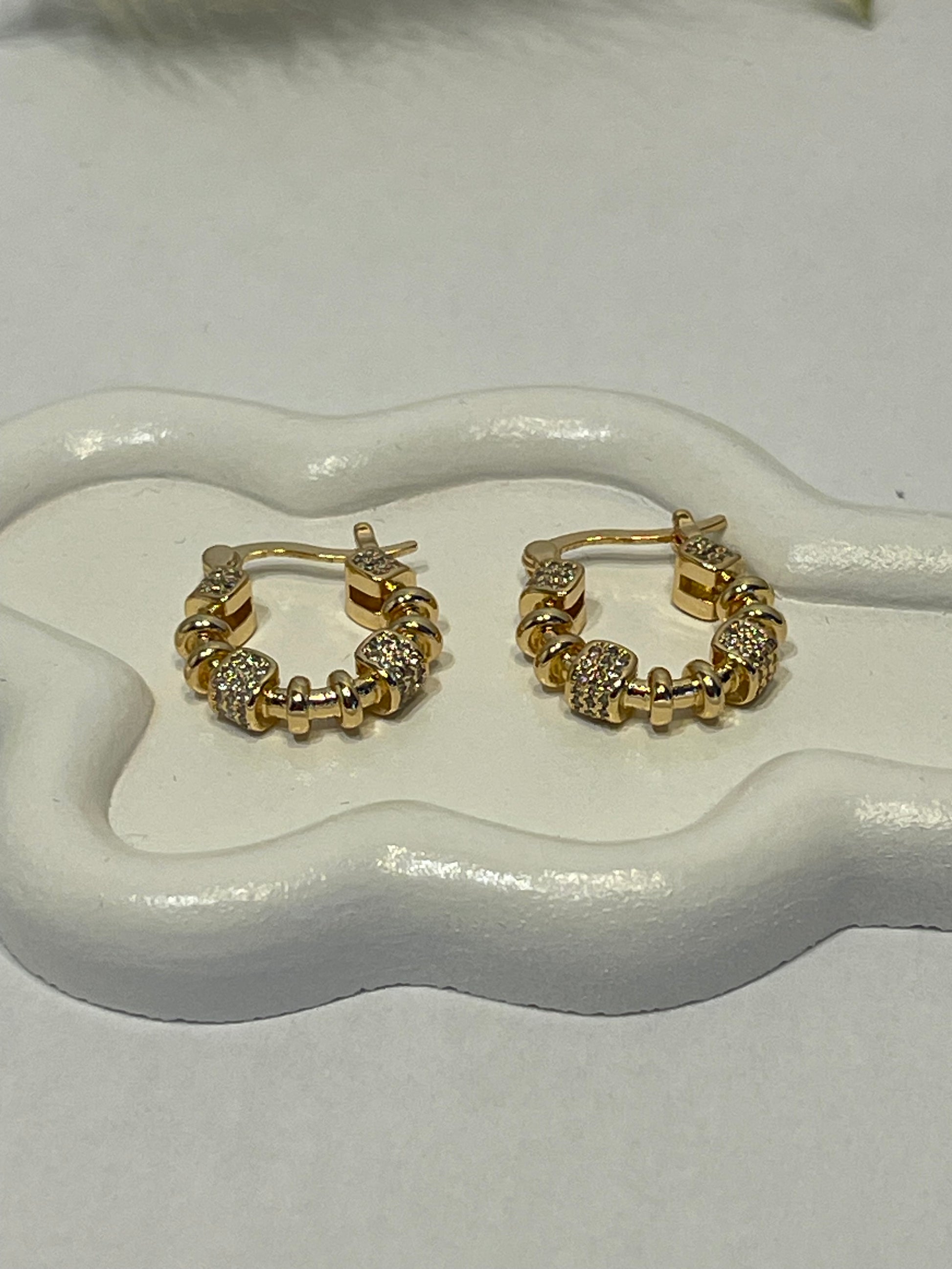"Gold earrings adorned with silver strass, very elegant and won't change color. A unique piece that you'll love,