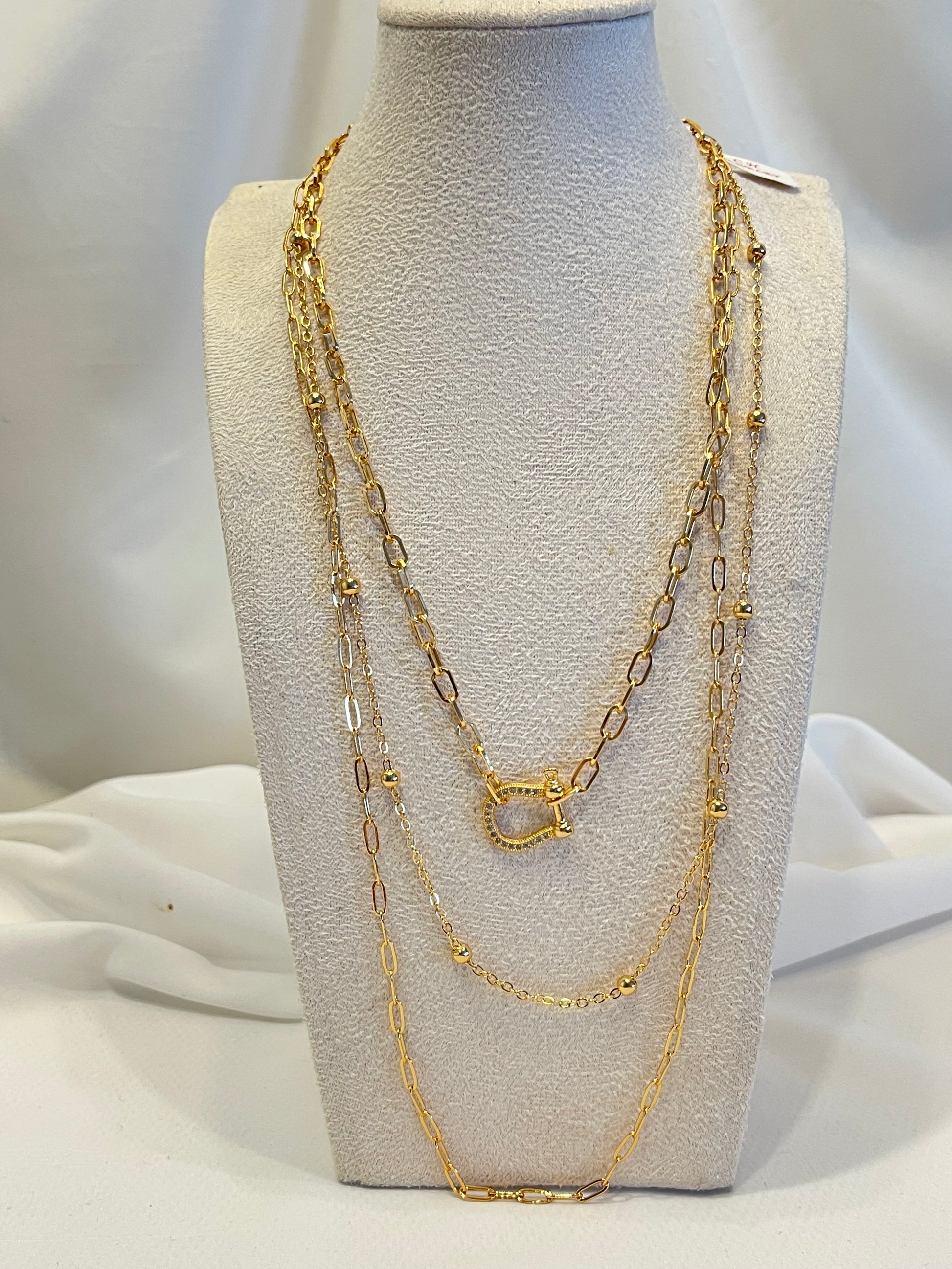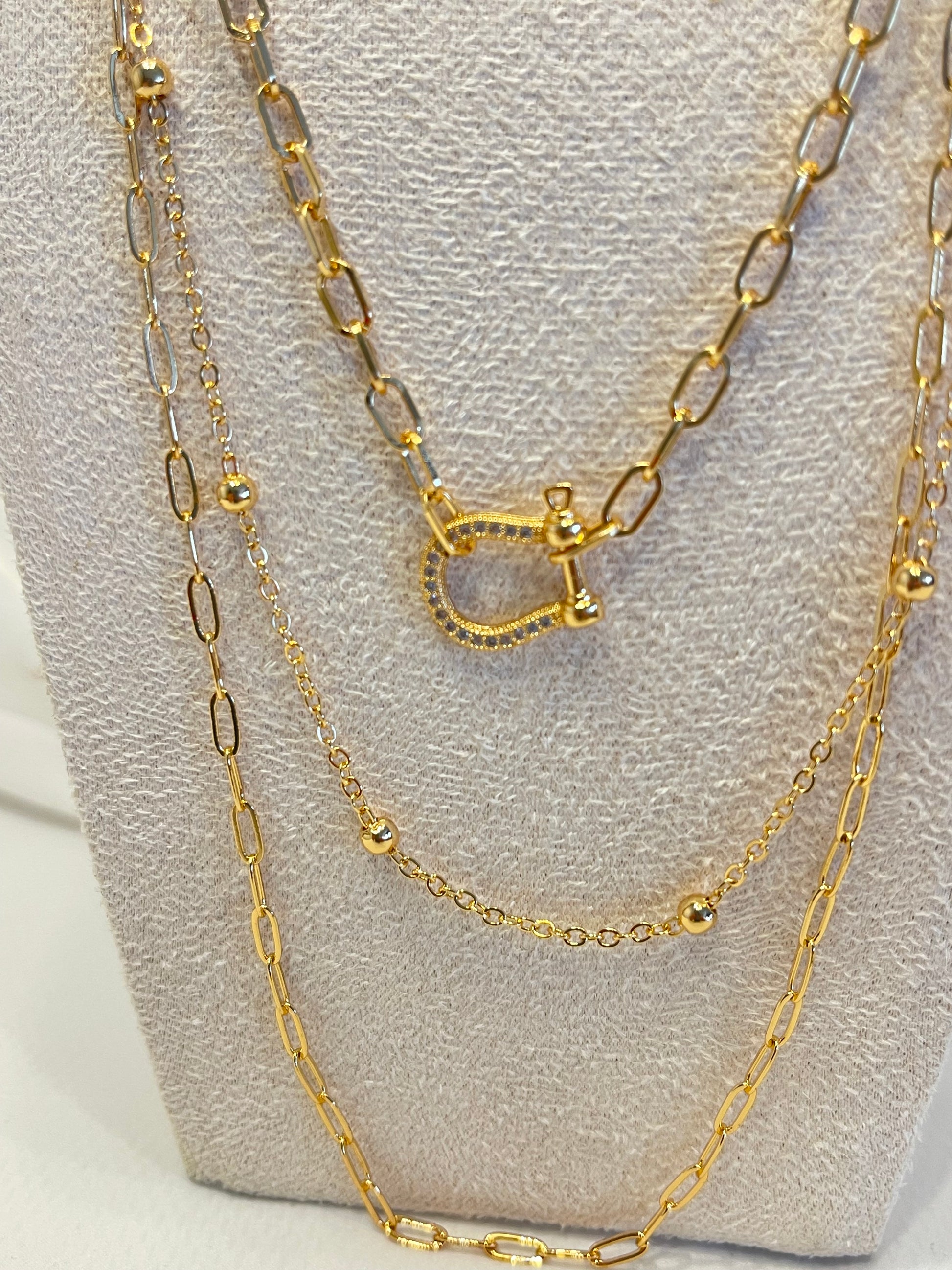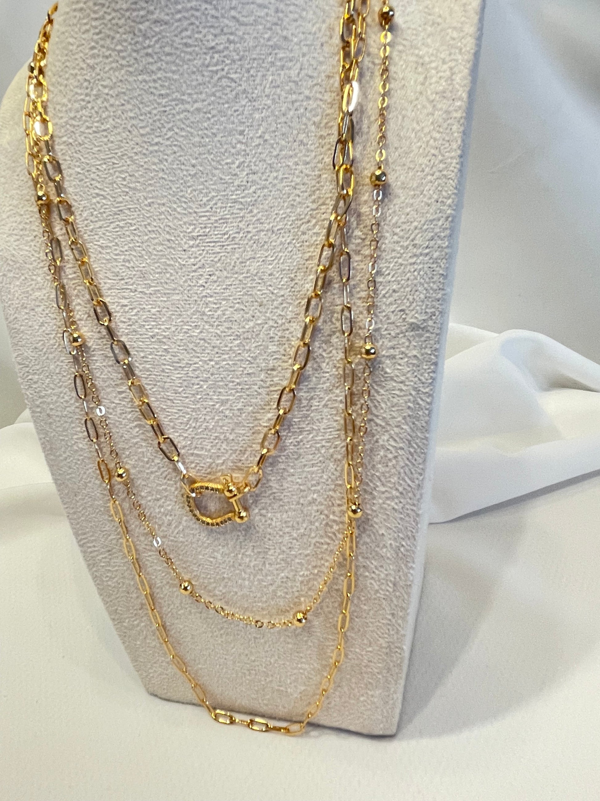 Brillez de mille feux avec ce somptueux collier doré à trois niveaux, conçu pour incarner le raffinement et le style. Son design moderne et sophistiqué en fait l’accessoire parfait pour toutes les occasions – d’une soirée élégante à une sortie décontractée.