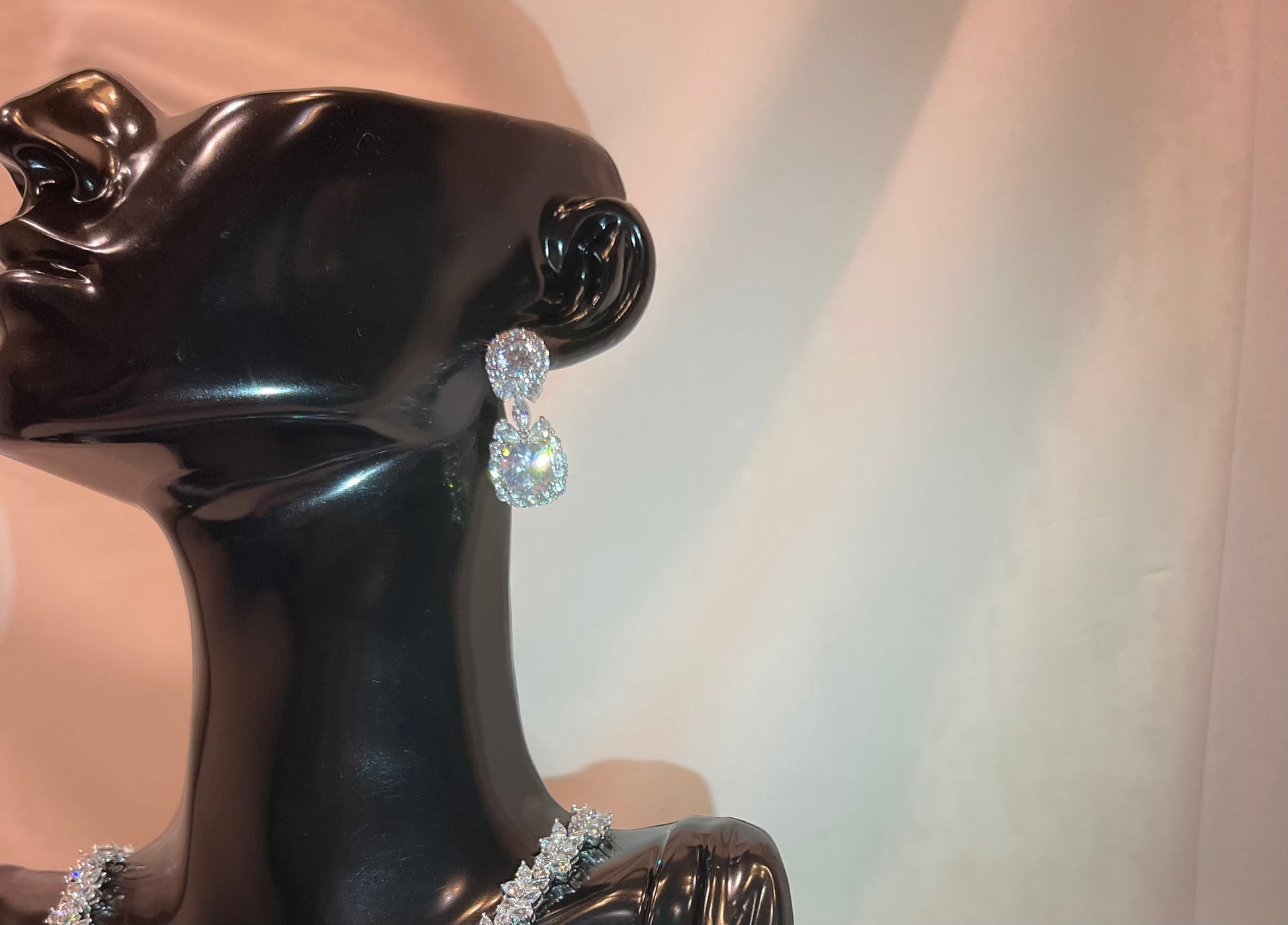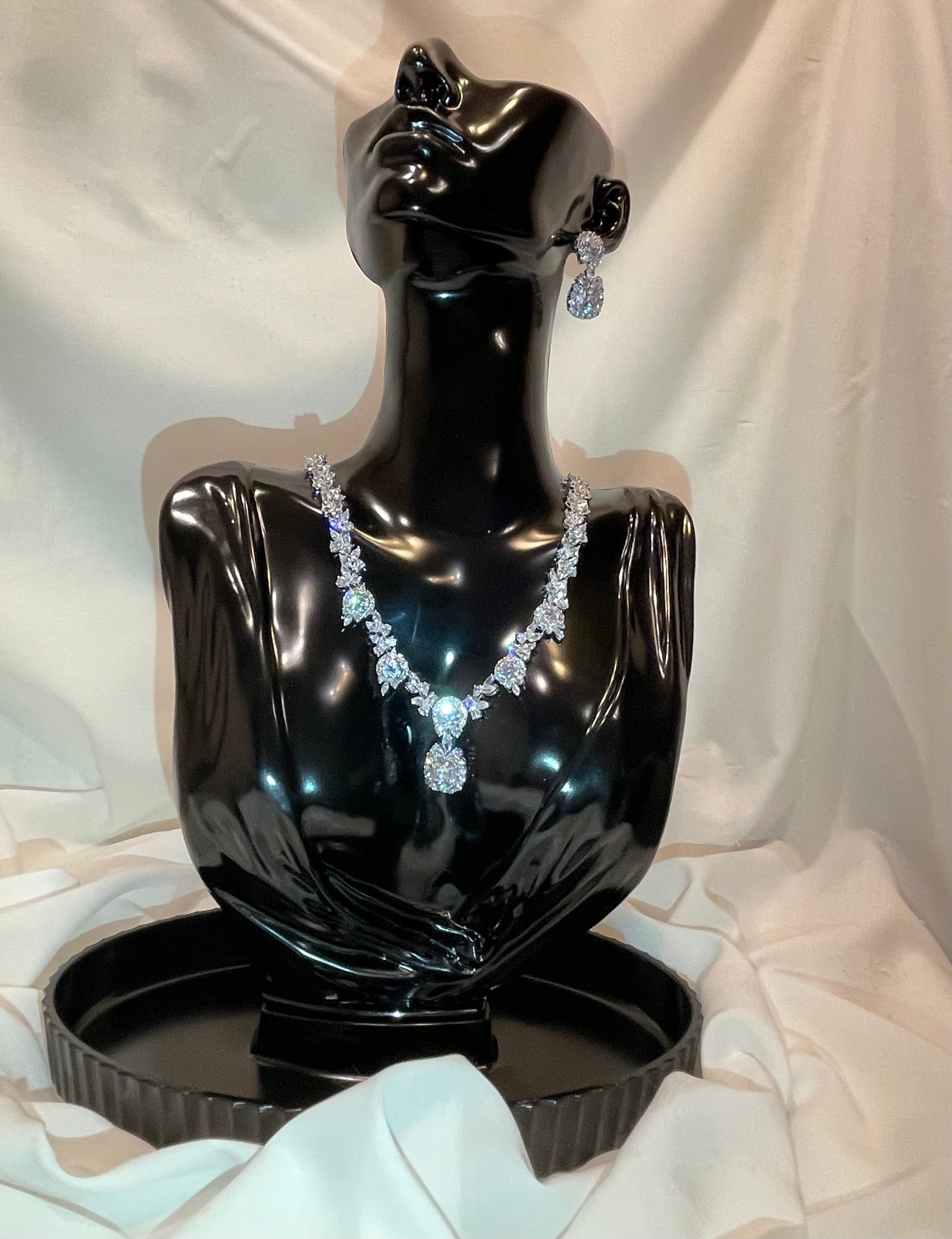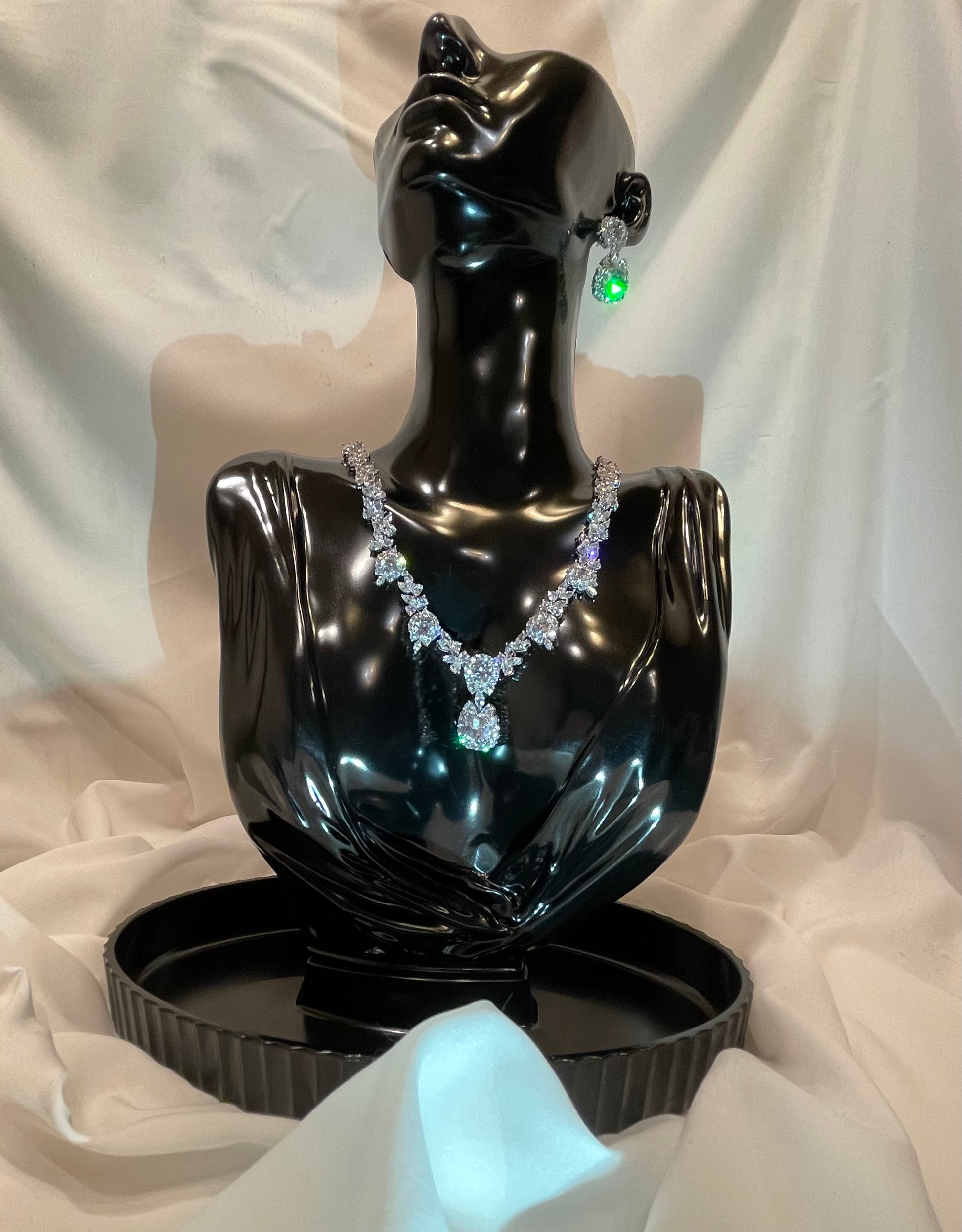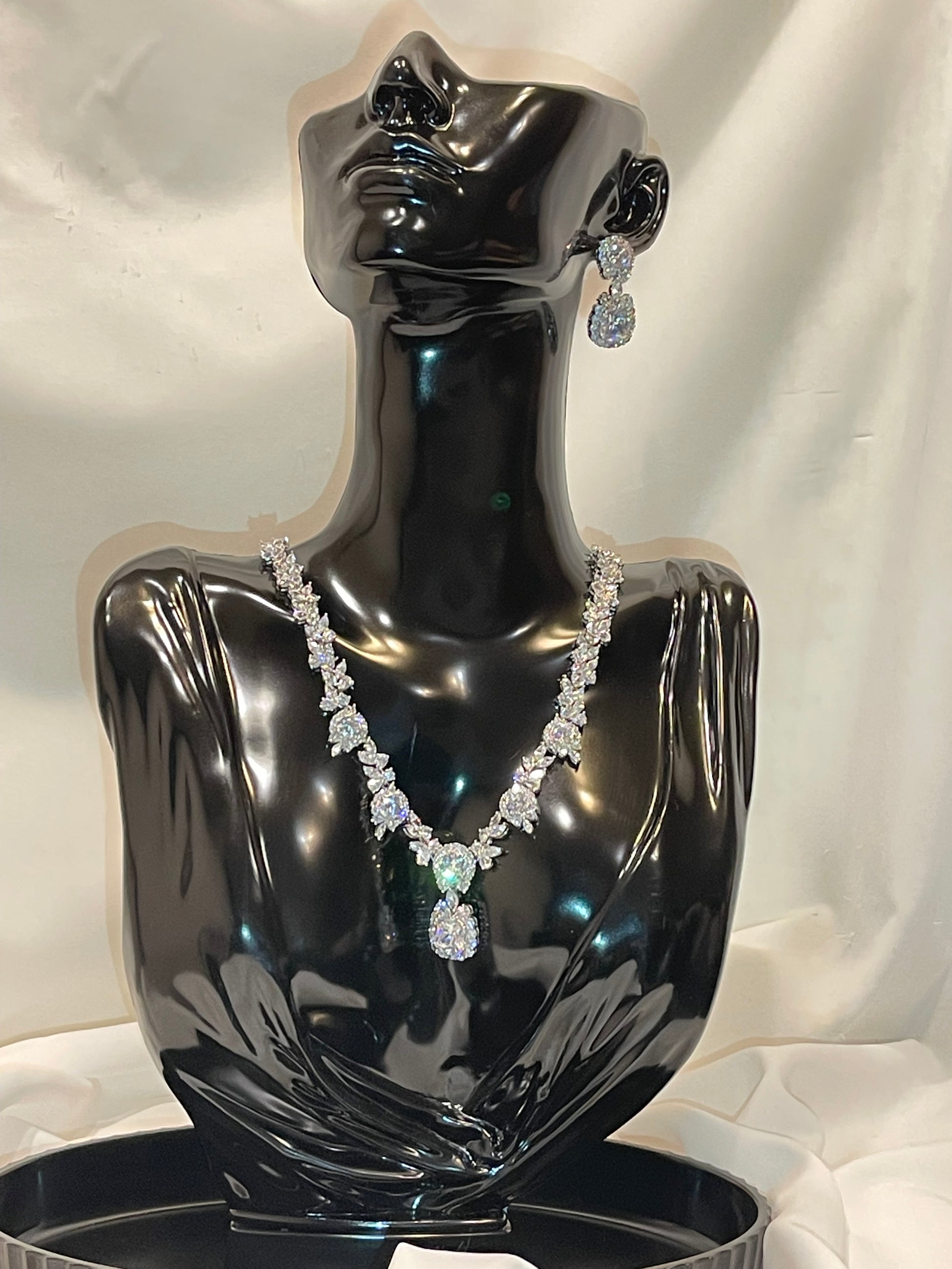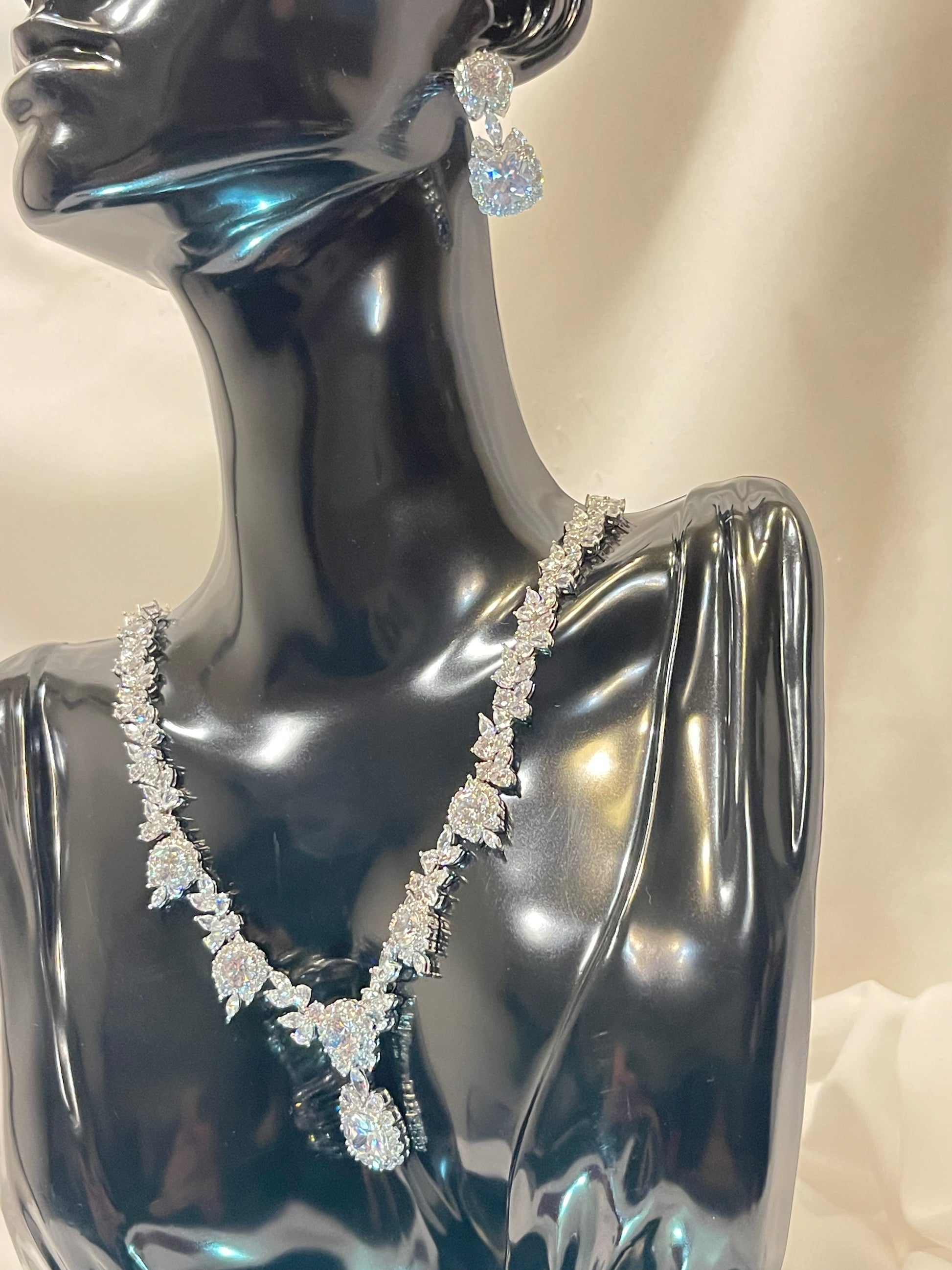Elegant and luxurious zircon set with an exceptional shine and stable color, designed to make you a unique glow on your special day. Only one piece available, ensuring you’ll be the first and only one to wear it.