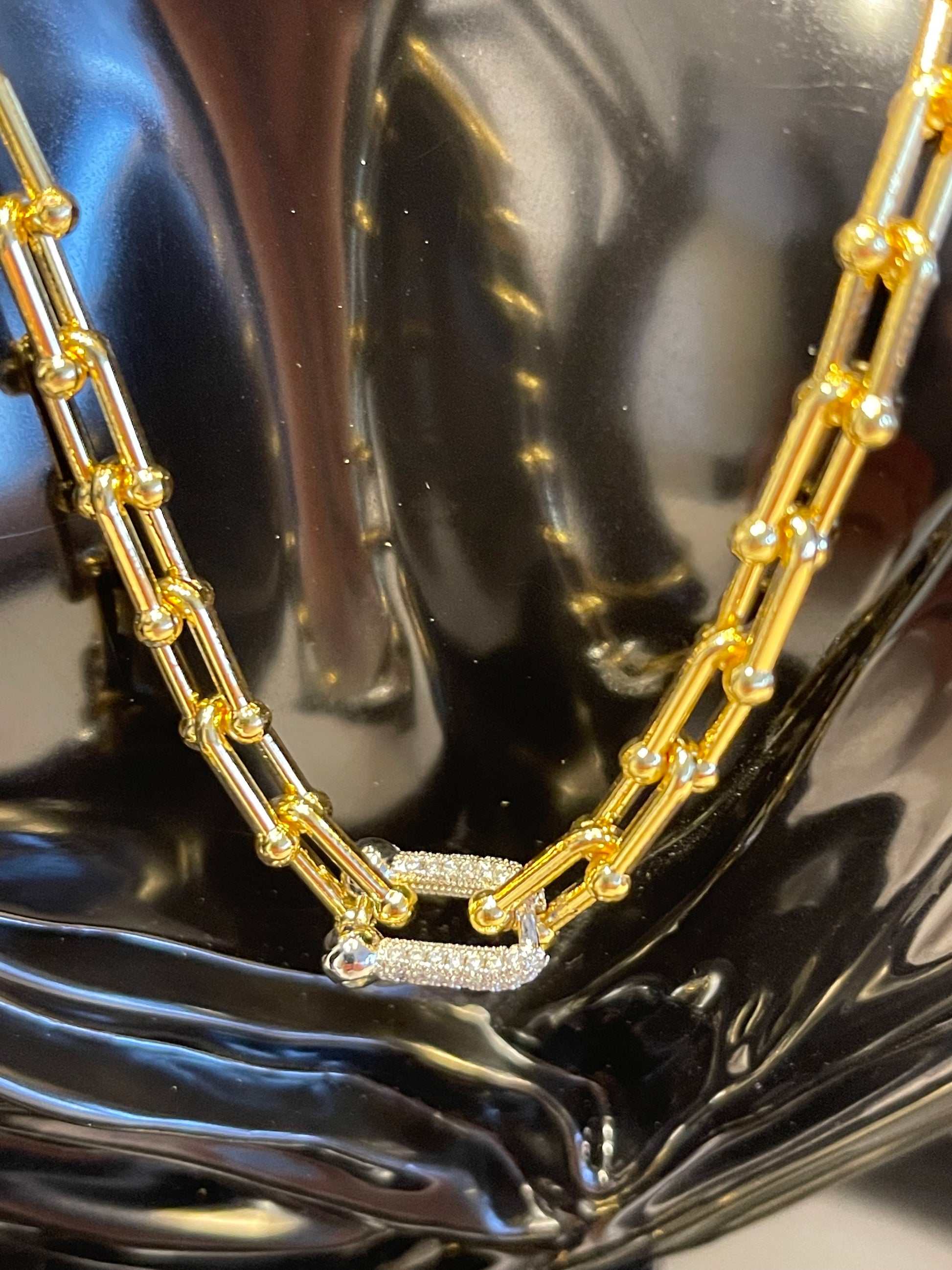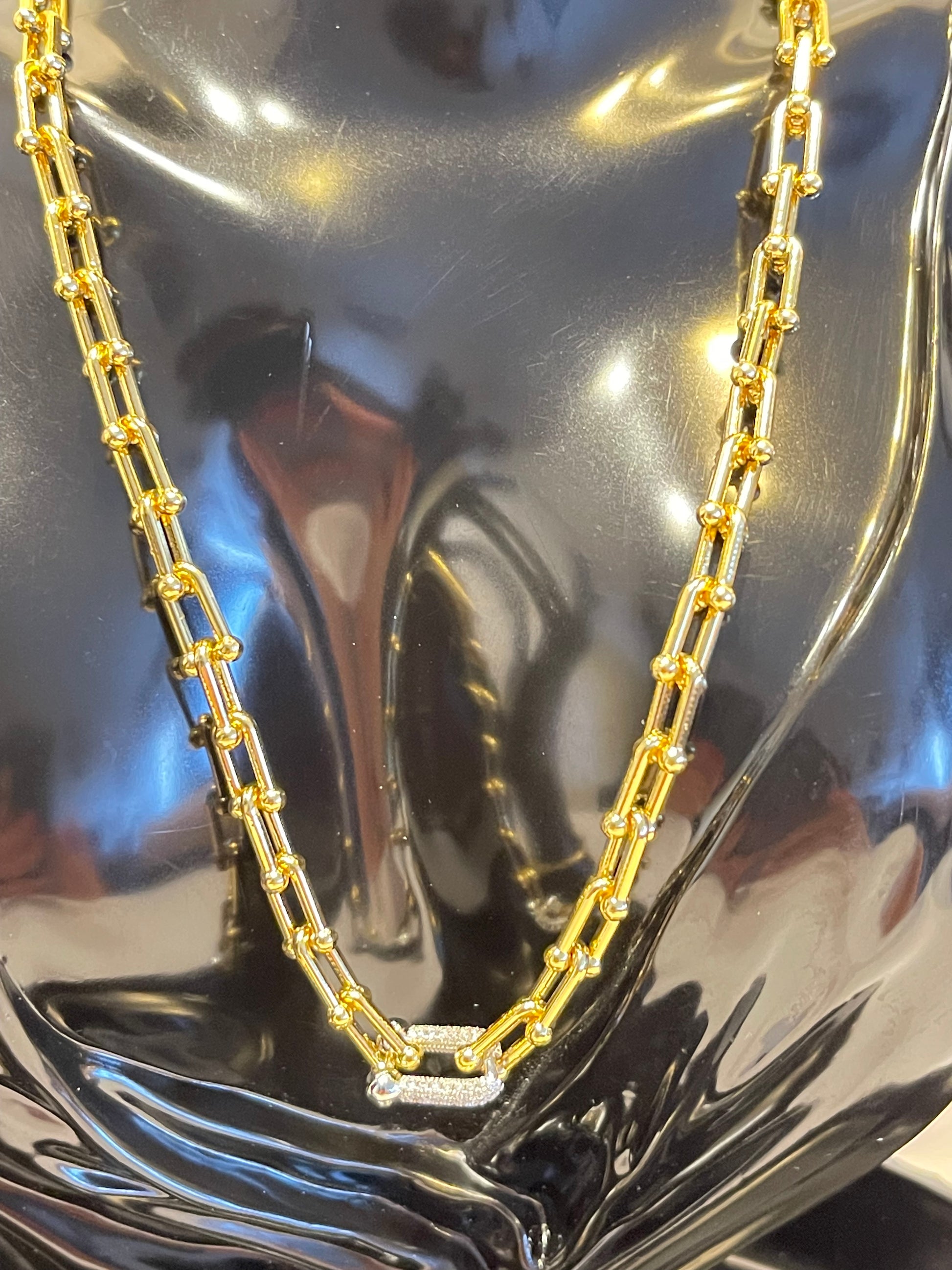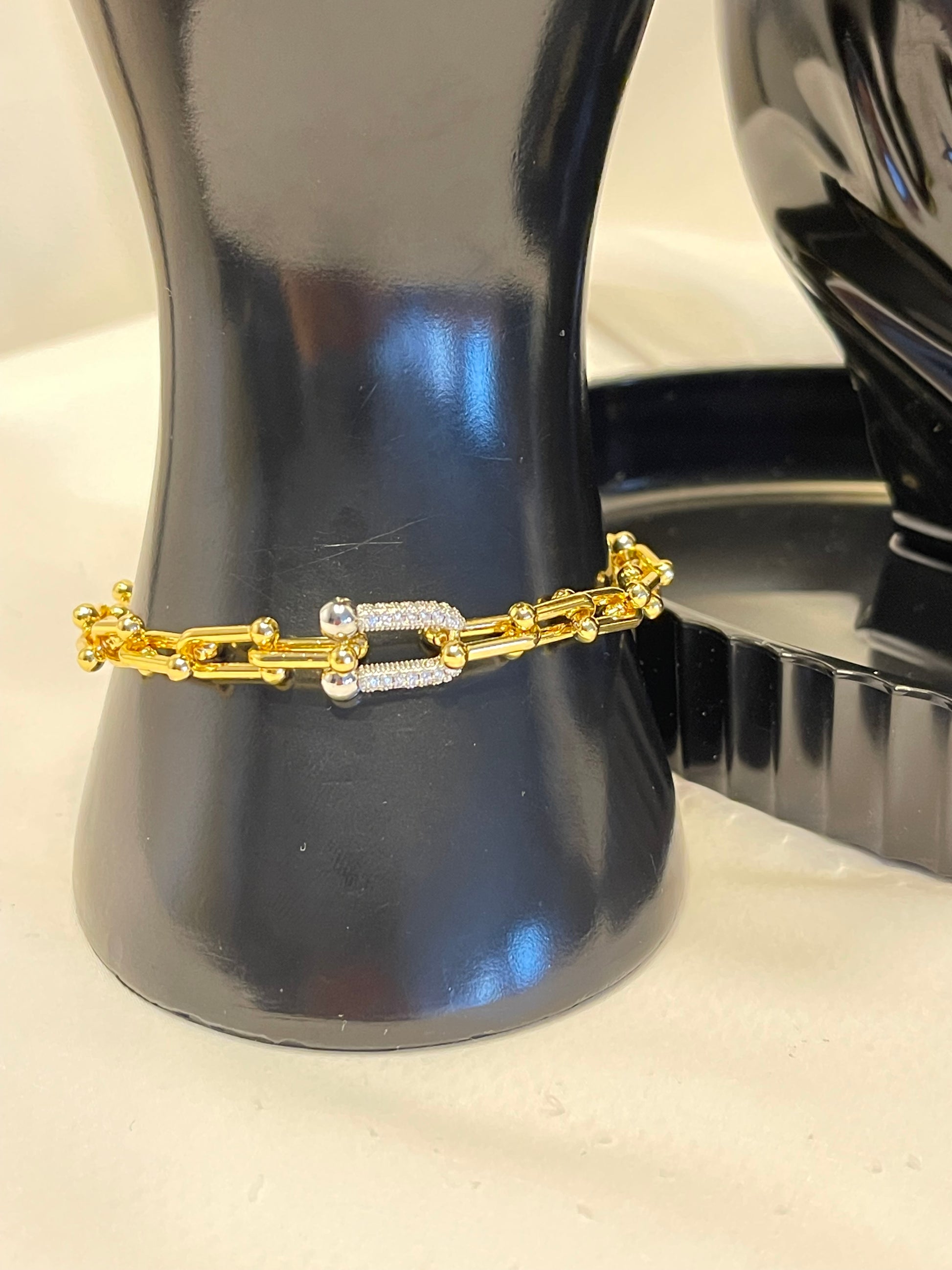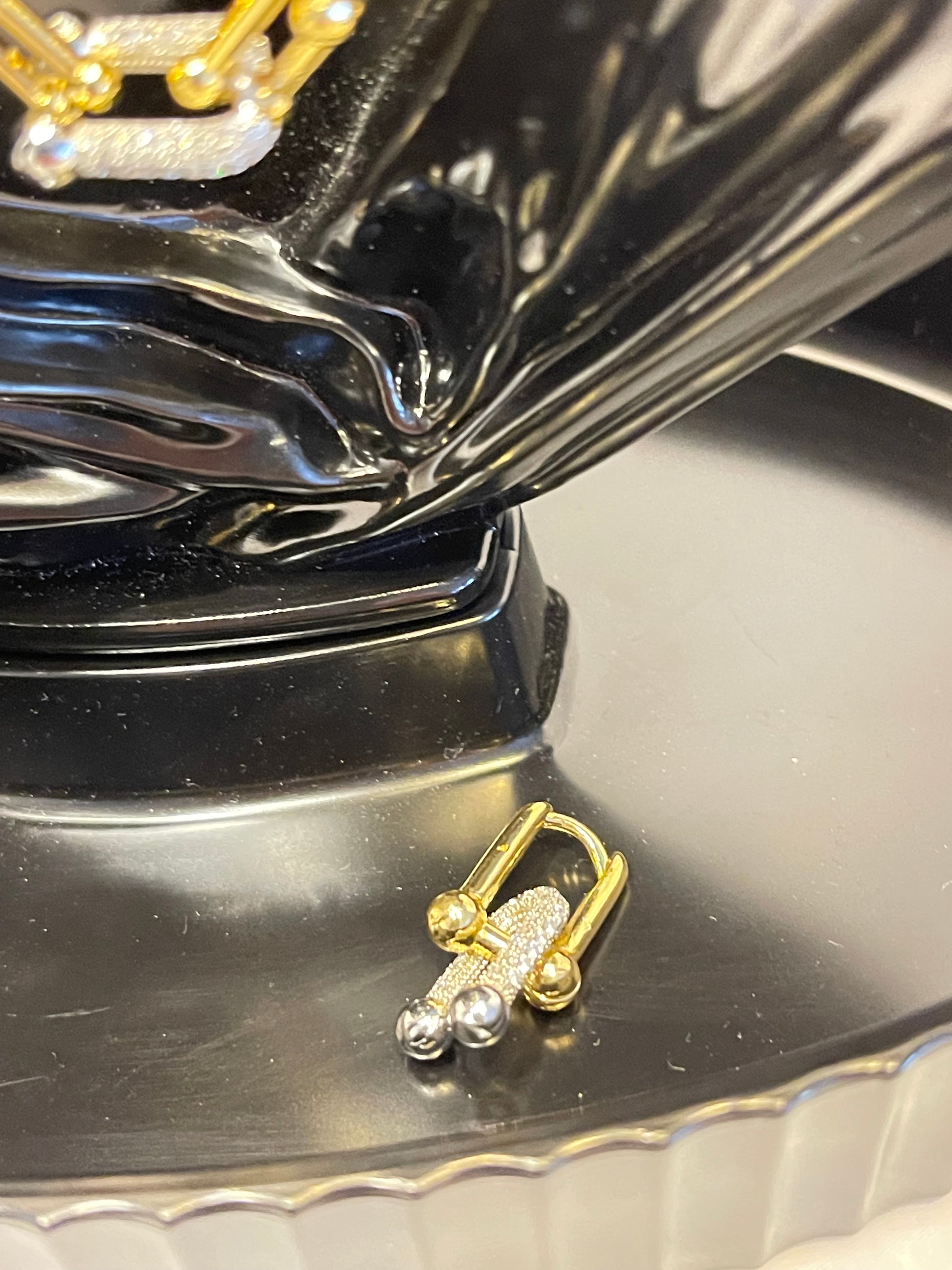 Parure élégante composée d’un collier, bracelet et boucles d’oreilles au design unique mêlant or et argent dans un style chic et décontracté. Idéale pour toutes les occasions, elle apporte une touche de raffinement et de distinction à votre look.